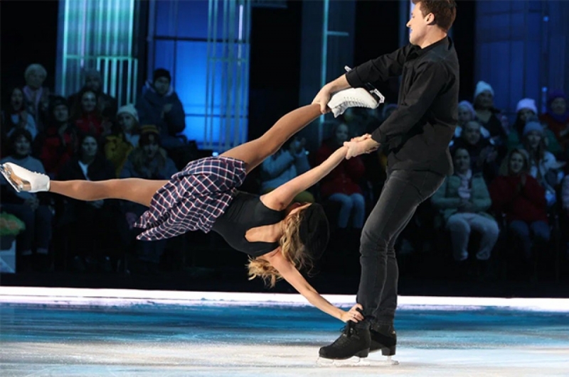 Поддержала флешмоб и пара Регина Тодоренко — Александр Энберт. Они вышли на лед под песню Регины «Он за мной».